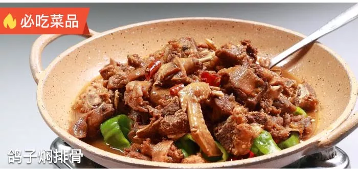鸽子焖排骨是这里的特色。来这里一定要尝尝这新CP。红焖大块牛肉、梁子湖大白刁,爱吃鱼的可以闭着眼睛点。店家定位是经济实惠,菜品分量足,价格nice.