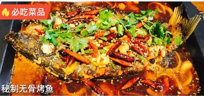 一种新奇的吃鱼体验。这里鱼都是活鱼现杀,先蒸后烤,鱼肉鲜汁紧紧被锁住。汤红色亮,辣而不燥, 鲜到极致!秘制做法更是“鲜到咂舌”绝对符合挑剔的你。