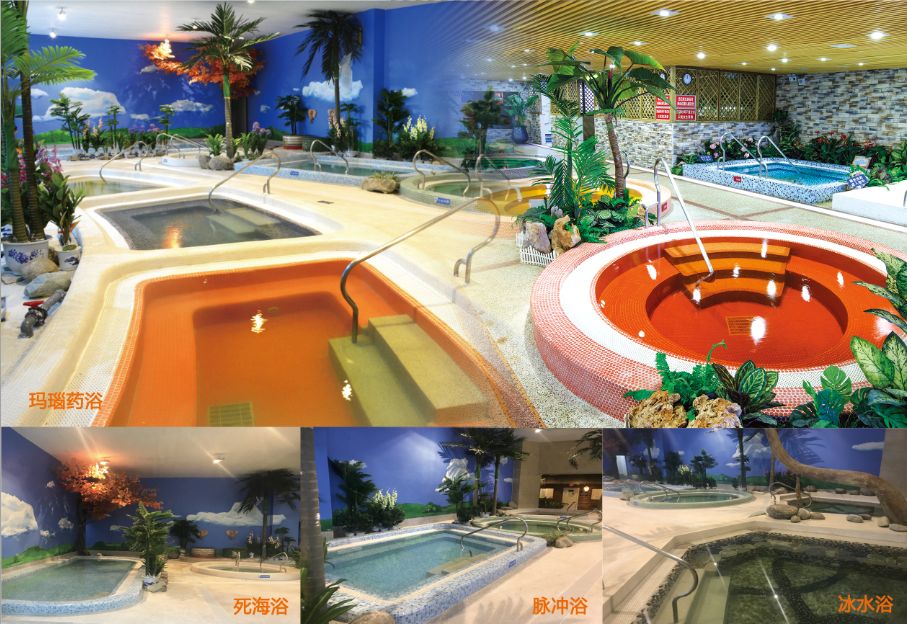 活水馆内设15个水疗设施,一边游泳一边还可以享受水疗的快感,缓解精神压力。脚底按摩浴、钩弧拍打按摩浴、颈拍打按摩浴、超音波按摩浴!