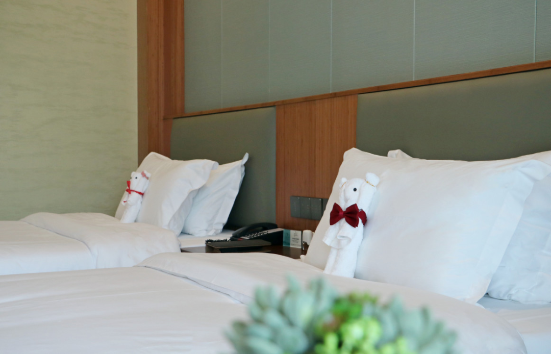 ◆ 房间床型:标准间:1.35m 床两张;大床房:1.8m床一张(加床须加收150元/张,费用前台自理)