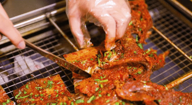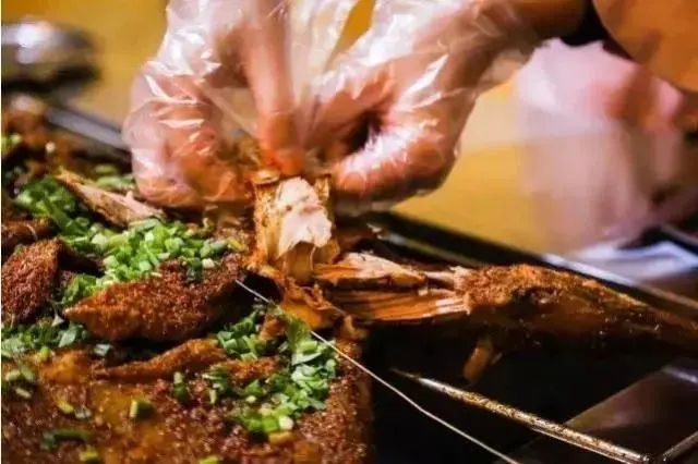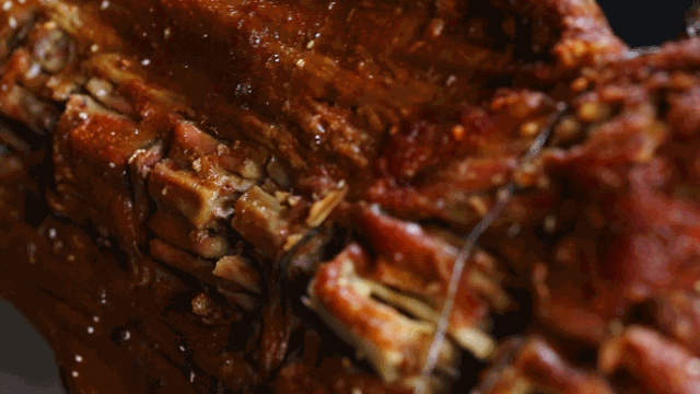 用刀摁住脊骨,感受羊肉撕裂开来的酸爽