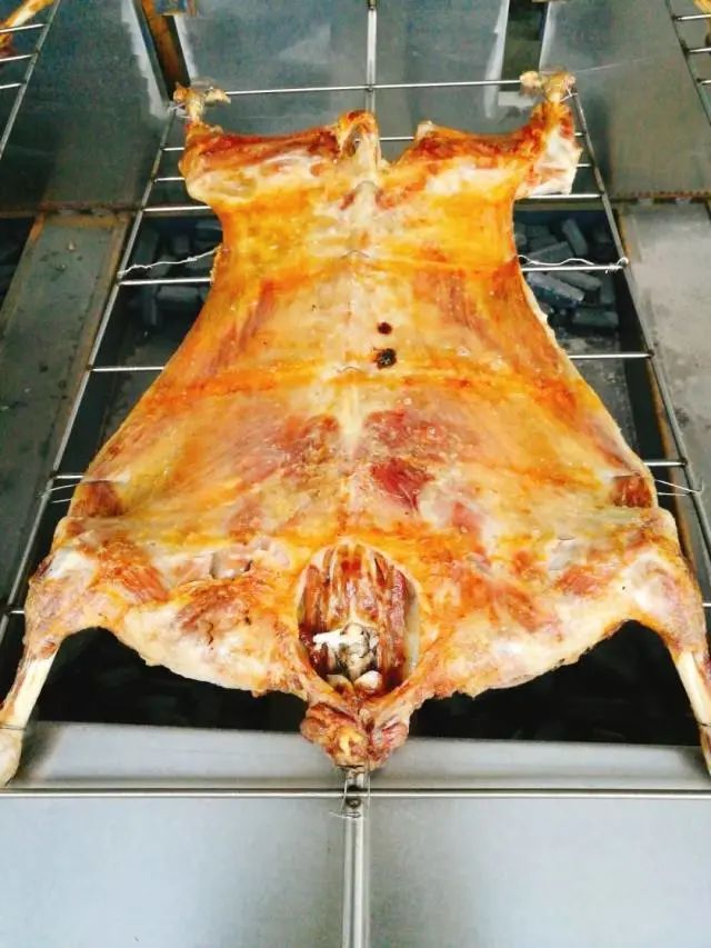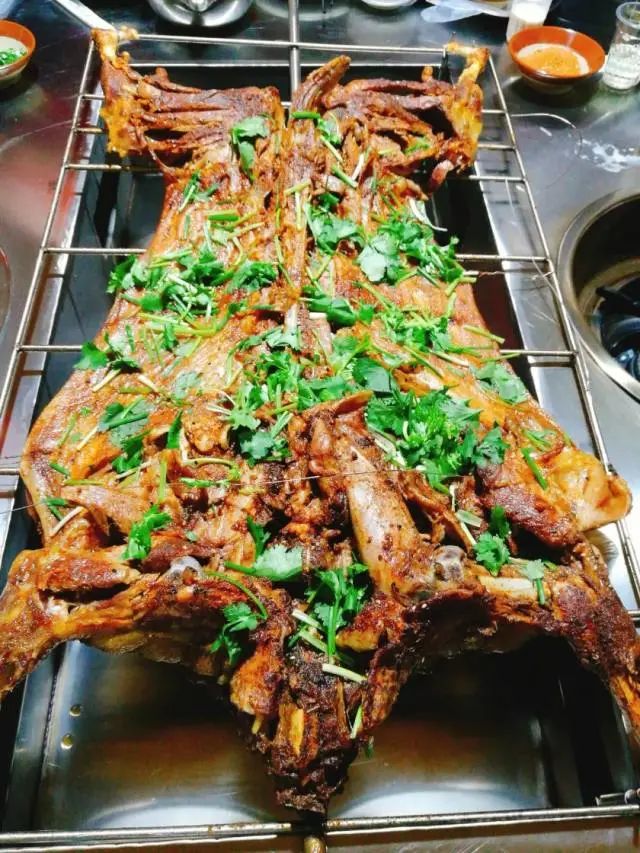 表皮烤得酥脆,羊肉还是细腻嫩滑